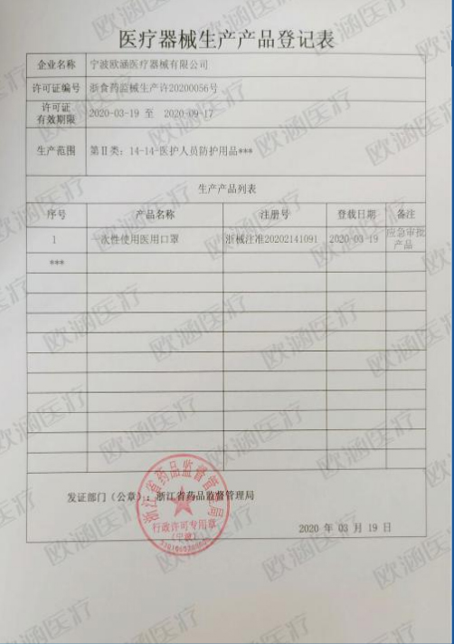 医疗器械生产产品登记表