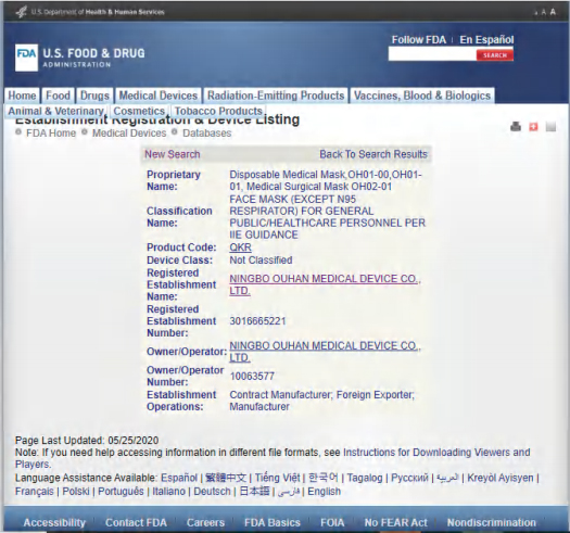 FDA注册号3016665221