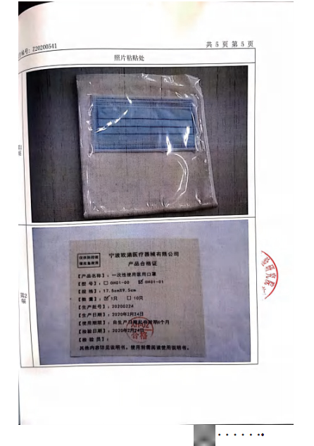 OH01-01(绑带式) 一次性使用医用口罩检测报告