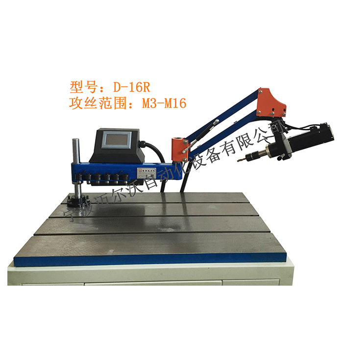 电机功率 600W 电压 220v 转速 0-200 摇臂支架长度 1000MM 攻丝方向 任意万向攻丝(万向型) 攻丝范围 公制:M4M、M5、M6、M8、M10、M12、M14、M16 攻丝范围 英制:1/8、5/32、3/16、1/4、5/16、3/8、1/2、9/16、5/8 设备配置: