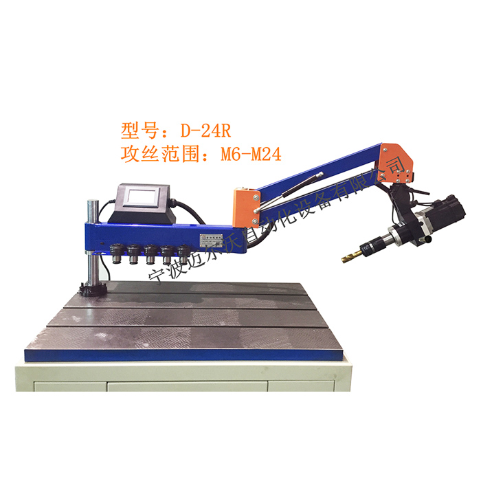 电机功率 750W 电压 220v 转速 0-120 摇臂支架长度 1000MM 攻丝方向 任意方向攻丝(万向型) 攻丝范围 公制:M6、M8、10、12、M14、M16、M18、M20、M22、M24 攻丝范围 英制:1/4、5/16、3/8、1/2、9/16、5/8、3/4、7/8 设备配置: