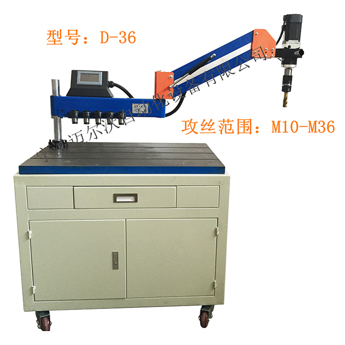 电机功率 1500W 电压 220v 转速 0-60 摇臂支架长度 1000MM 攻丝方向 平面垂直攻丝(垂直型) 攻丝范围 公制:10、12、M14、M16、M18、M20、M22、M24、M27、M30、M33、M36 攻丝范围 英制:3/8、1/2、9/16、5/8、3/4、7/8、1/8PT、1/4PT、3/8PT 设备配置: