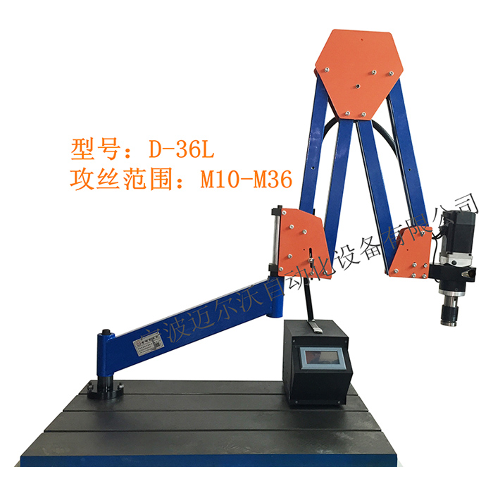 电机功率 1500W 电压 220v 转速 0-60 摇臂支架长度 1000MM 攻丝方向 任意方向攻丝(万向型) 攻丝范围 公制:10、12、M14、M16、M18、M20、M22、M24、M27、M30、M33、M36 攻丝范围 英制:3/8、1/2、9/16、5/8、3/4、7/8、1/8PT、1/4PT、3/8PT 设备配置: