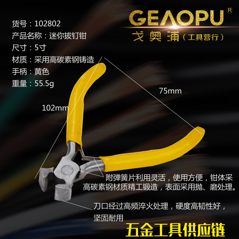 本网页所展示的有关【迷你拔钉钳】的信息/图片/参数等由的会员【宁波市戈奥浦工具有限公司】提供,由会员【宁波市戈奥浦工具有限公司】自行对信息/图片/参数等的真实性、准确性和合法性负责, 本平台(本网站)仅提供展示服务,请谨慎交易,因交易而产生的法律关系及法律纠纷由您自行协商解决,本平台(本网站)对此不承担任何责任。