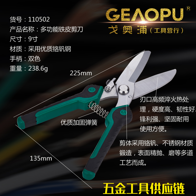 本网页所展示的有关【多功能铁皮剪刀】的信息/图片/参数等由的会员【宁波市戈奥浦工具有限公司】提供,由会员【宁波市戈奥浦工具有限公司】自行对信息/图片/参数等的真实性、准确性和合法性负责, 本平台(本网站)仅提供展示服务,请谨慎交易,因交易而产生的法律关系及法律纠纷由您自行协商解决,本平台(本网站)对此不承担任何责任。
