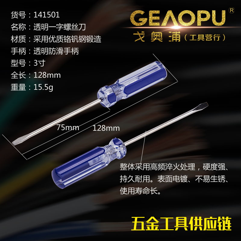 本网页所展示的有关【透明一字螺丝刀】的信息/图片/参数等由的会员【宁波市戈奥浦工具有限公司】提供,由会员【宁波市戈奥浦工具有限公司】自行对信息/图片/参数等的真实性、准确性和合法性负责, 本平台(本网站)仅提供展示服务,请谨慎交易,因交易而产生的法律关系及法律纠纷由您自行协商解决,本平台(本网站)对此不承担任何责任。