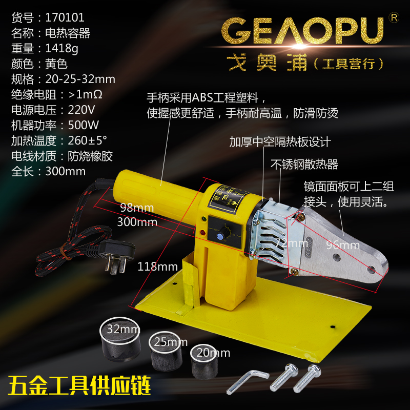 本网页所展示的有关【电热容器】的信息/图片/参数等由的会员【宁波市戈奥浦工具有限公司】提供,由会员【宁波市戈奥浦工具有限公司】自行对信息/图片/参数等的真实性、准确性和合法性负责, 本平台(本网站)仅提供展示服务,请谨慎交易,因交易而产生的法律关系及法律纠纷由您自行协商解决,本平台(本网站)对此不承担任何责任。