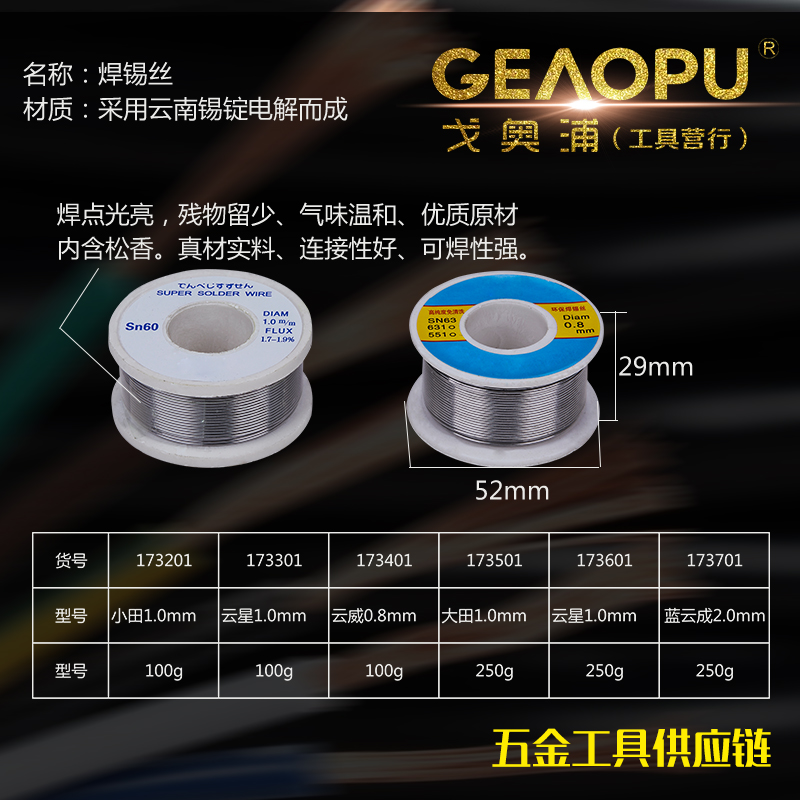 本网页所展示的有关【云南焊锡丝】的信息/图片/参数等由的会员【宁波市戈奥浦工具有限公司】提供,由会员【宁波市戈奥浦工具有限公司】自行对信息/图片/参数等的真实性、准确性和合法性负责, 本平台(本网站)仅提供展示服务,请谨慎交易,因交易而产生的法律关系及法律纠纷由您自行协商解决,本平台(本网站)对此不承担任何责任。