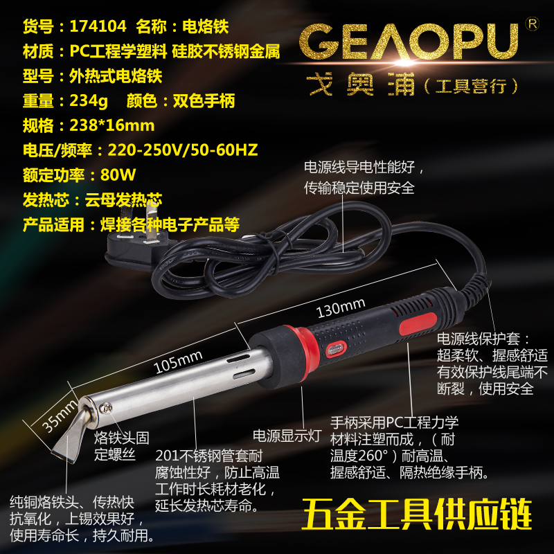 本网页所展示的有关【外热式电烙铁】的信息/图片/参数等由的会员【宁波市戈奥浦工具有限公司】提供,由会员【宁波市戈奥浦工具有限公司】自行对信息/图片/参数等的真实性、准确性和合法性负责, 本平台(本网站)仅提供展示服务,请谨慎交易,因交易而产生的法律关系及法律纠纷由您自行协商解决,本平台(本网站)对此不承担任何责任。