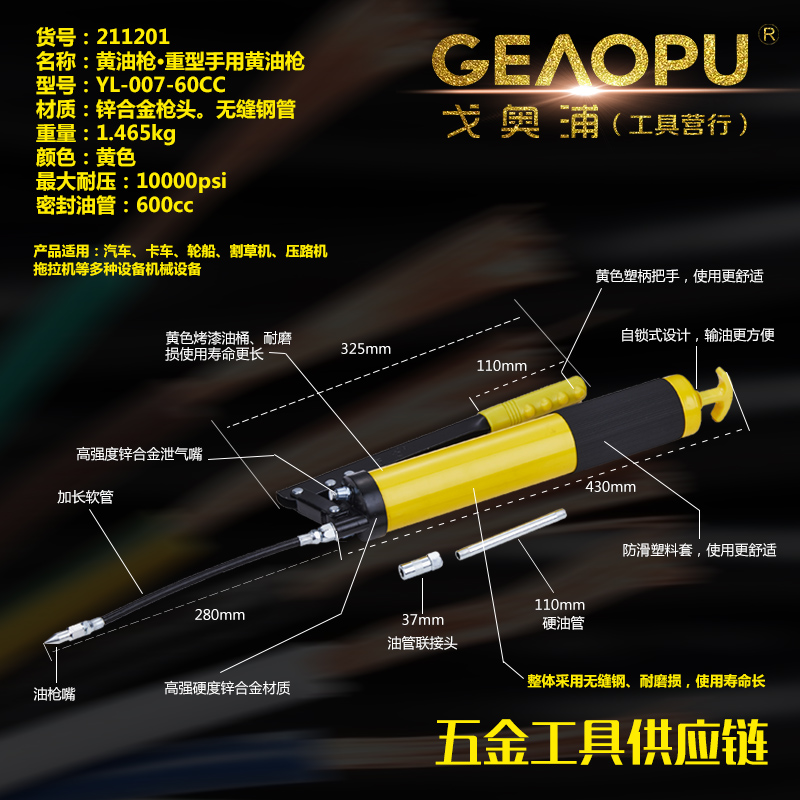 本网页所展示的有关【重型手用黄油枪】的信息/图片/参数等由的会员【宁波市戈奥浦工具有限公司】提供,由会员【宁波市戈奥浦工具有限公司】自行对信息/图片/参数等的真实性、准确性和合法性负责, 本平台(本网站)仅提供展示服务,请谨慎交易,因交易而产生的法律关系及法律纠纷由您自行协商解决,本平台(本网站)对此不承担任何责任。
