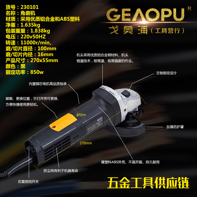 本网页所展示的有关【角磨机】的信息/图片/参数等由的会员【宁波市戈奥浦工具有限公司】提供,由会员【宁波市戈奥浦工具有限公司】自行对信息/图片/参数等的真实性、准确性和合法性负责, 本平台(本网站)仅提供展示服务,请谨慎交易,因交易而产生的法律关系及法律纠纷由您自行协商解决,本平台(本网站)对此不承担任何责任。