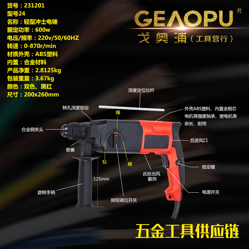本网页所展示的有关【冲击电锤】的信息/图片/参数等由的会员【宁波市戈奥浦工具有限公司】提供,由会员【宁波市戈奥浦工具有限公司】自行对信息/图片/参数等的真实性、准确性和合法性负责, 本平台(本网站)仅提供展示服务,请谨慎交易,因交易而产生的法律关系及法律纠纷由您自行协商解决,本平台(本网站)对此不承担任何责任。