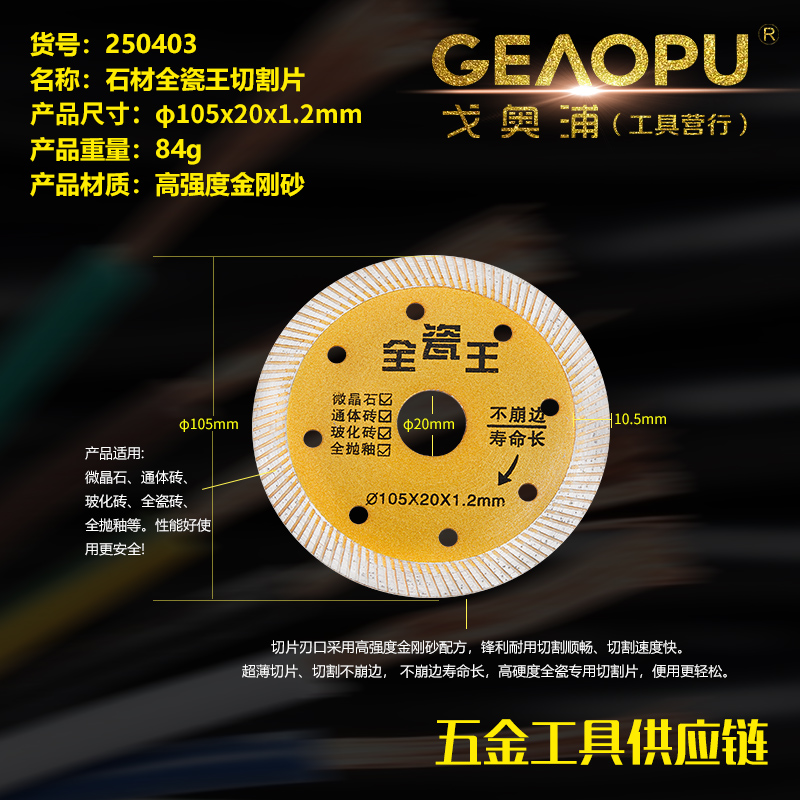 本网页所展示的有关【全瓷王切割片】的信息/图片/参数等由的会员【宁波市戈奥浦工具有限公司】提供,由会员【宁波市戈奥浦工具有限公司】自行对信息/图片/参数等的真实性、准确性和合法性负责, 本平台(本网站)仅提供展示服务,请谨慎交易,因交易而产生的法律关系及法律纠纷由您自行协商解决,本平台(本网站)对此不承担任何责任。