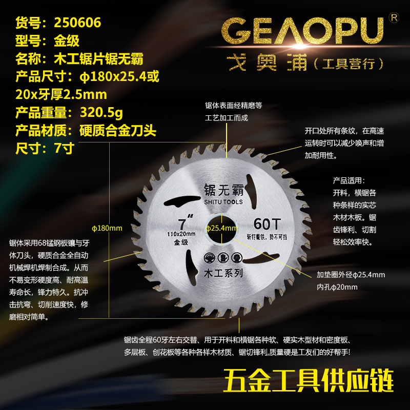 本网页所展示的有关【木工锯片(锯无霸)】的信息/图片/参数等由的会员【宁波市戈奥浦工具有限公司】提供,由会员【宁波市戈奥浦工具有限公司】自行对信息/图片/参数等的真实性、准确性和合法性负责, 本平台(本网站)仅提供展示服务,请谨慎交易,因交易而产生的法律关系及法律纠纷由您自行协商解决,本平台(本网站)对此不承担任何责任。