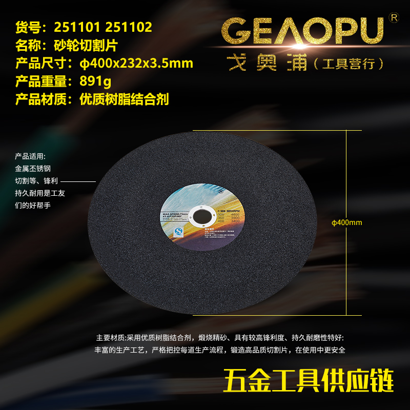 本网页所展示的有关【砂轮切割片】的信息/图片/参数等由的会员【宁波市戈奥浦工具有限公司】提供,由会员【宁波市戈奥浦工具有限公司】自行对信息/图片/参数等的真实性、准确性和合法性负责, 本平台(本网站)仅提供展示服务,请谨慎交易,因交易而产生的法律关系及法律纠纷由您自行协商解决,本平台(本网站)对此不承担任何责任。