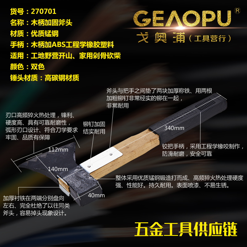 本网页所展示的有关【木柄加固斧头】的信息/图片/参数等由的会员【宁波市戈奥浦工具有限公司】提供,由会员【宁波市戈奥浦工具有限公司】自行对信息/图片/参数等的真实性、准确性和合法性负责, 本平台(本网站)仅提供展示服务,请谨慎交易,因交易而产生的法律关系及法律纠纷由您自行协商解决,本平台(本网站)对此不承担任何责任。