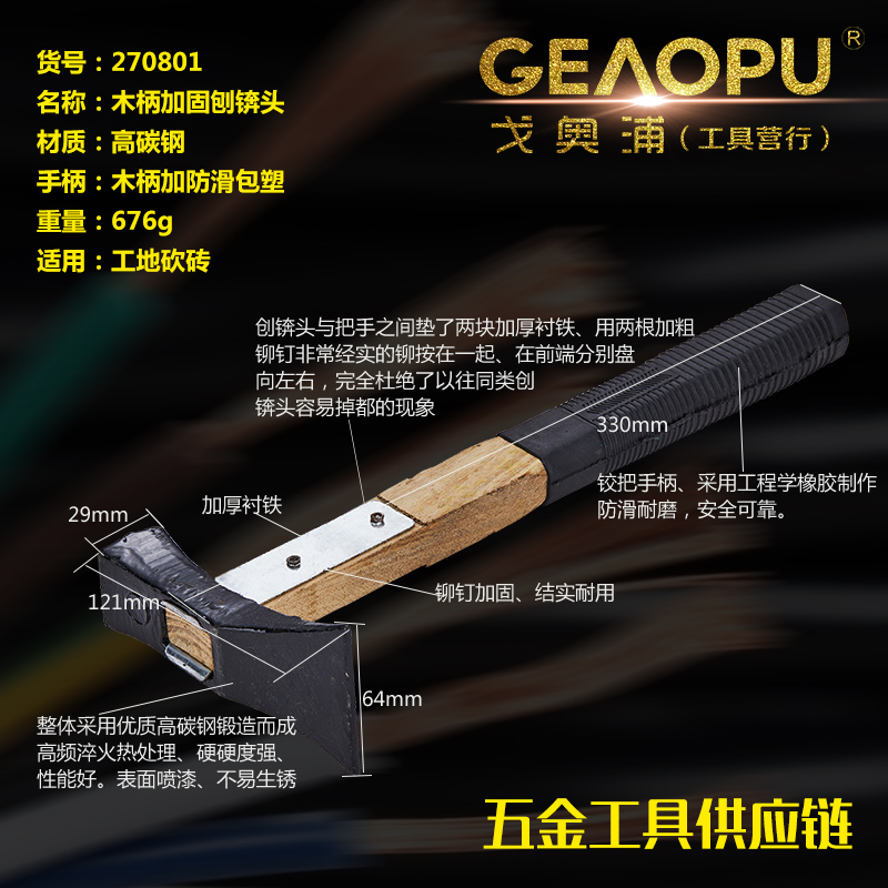 本网页所展示的有关【木柄加固刨锛头】的信息/图片/参数等由的会员【宁波市戈奥浦工具有限公司】提供,由会员【宁波市戈奥浦工具有限公司】自行对信息/图片/参数等的真实性、准确性和合法性负责, 本平台(本网站)仅提供展示服务,请谨慎交易,因交易而产生的法律关系及法律纠纷由您自行协商解决,本平台(本网站)对此不承担任何责任。