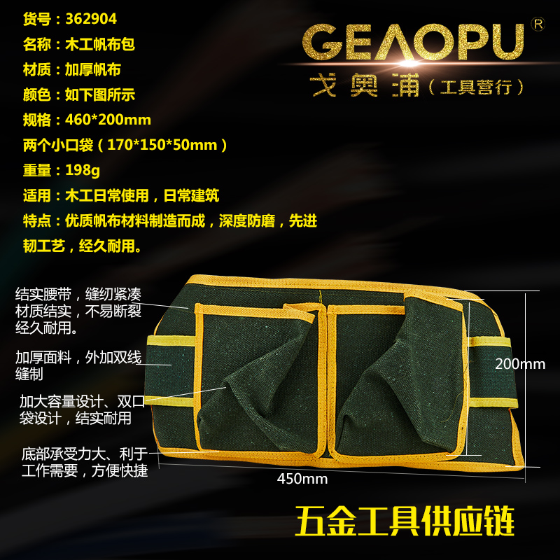 本网页所展示的有关【帆布腰包】的信息/图片/参数等由的会员【宁波市戈奥浦工具有限公司】提供,由会员【宁波市戈奥浦工具有限公司】自行对信息/图片/参数等的真实性、准确性和合法性负责, 本平台(本网站)仅提供展示服务,请谨慎交易,因交易而产生的法律关系及法律纠纷由您自行协商解决,本平台(本网站)对此不承担任何责任。