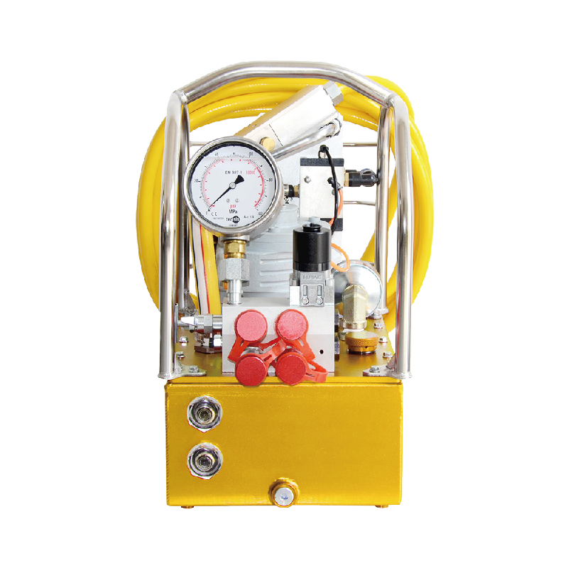 三级流量泵速度快、效率高,是普通二级泵 2 倍以上。 标准配置同时驱动两台扳手(也可配置 4 台扳手同步驱动)。泵站重量轻便,整机重量仅为 20kg 左右。在 70-700bar范围内调整输出压力。内置高效冷却系统,可保持长时间工作。铝制油箱,散热好、不易生锈。无电控系统,可用于石油,石化,油田等防爆场合。