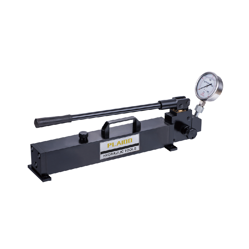 航天材料(铝钛合金)制造,重量轻,强度高,耐腐蚀,抗冲击, 适应各种恶劣环境。 双速作用,内置精密高低压切换阀,低压时提高更大流量,节省操作时间,提高工作效率。 产品外表经过阳极氧化处理,美观,耐腐蚀性更强。 压力表及表座一体设计,减少泄漏。 工作压力最高可达 200Mpa,双级设计使流量增大。 内置式压力切换阀门使用省时省力。 适用于液压油缸,拉伸器,液压螺母等各种 70-200Mpa 超高压液压工具配套。