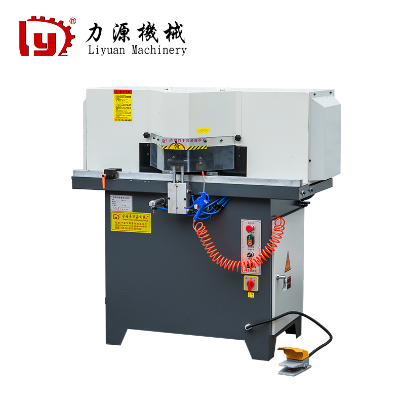 特点: 适合锯切各种异型非铁金属、铝、铝合金,木塑,特别适用于、铝合金 灯箱、屏风、LED铝框 木制相框,广告灯箱、太阳能边框型材之精 密锯切。 ● 锯切45度准确,精度高,切面光洁无毛刺,高效率。 ● 只需脚踏开关,机械自动往下压料和侧压料,自动锯料既安全又轻松