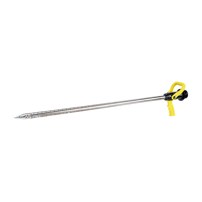 枪体:水枪执行国家标准生产和检验,枪体采用铝镁合金制造,T5热处理和阳极氧化防腐处理,枪管采用 304不锈钢管和铜质枪头组成,水流通过枪管致穿刺枪头插入物体内,由喷射孔四面注水,用于草堆、棉花堆、煤场等发生燃烧和热量的余火扑救与降温。
