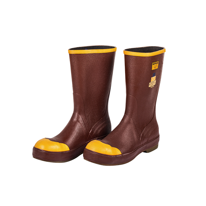 注意:在易爆物附近或者要求穿着导电性防护鞋的工作场所禁止穿着此类防护靴。产品特点:特殊复合橡胶材质,柔韧的手工压层工艺制造。耐用尼龙衬里,更佳舒适且便于穿脱;内置式减震鞋垫减少脚部疲劳,带来全天候舒适;超复合材料垫片加强鞋体结构,有效支撑足弓;SURE-LOCTM鞋底和鞋跟采用平坦贴合锐边纹理,是室内作业的理想选择。
